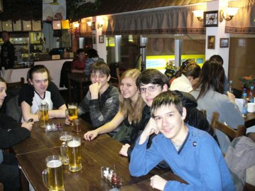 Греемся в баре... ммм пиво...))) Идем слева на право: Маленький кусоГ Вармилиона, Флу, Люпин, ПатефончеГ, КустарнеГ и ПандО |